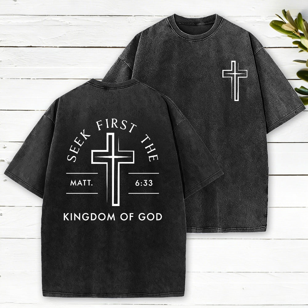 Seek First The Kingdom Of God Christian Washed T-Shirt