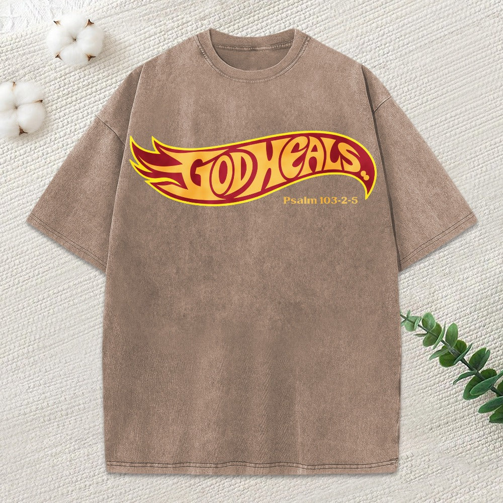 God Heals Christian Washed T-Shirt